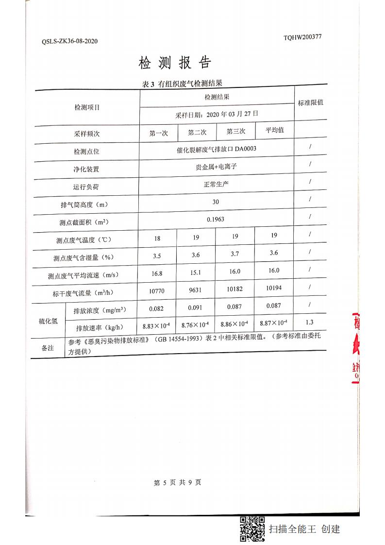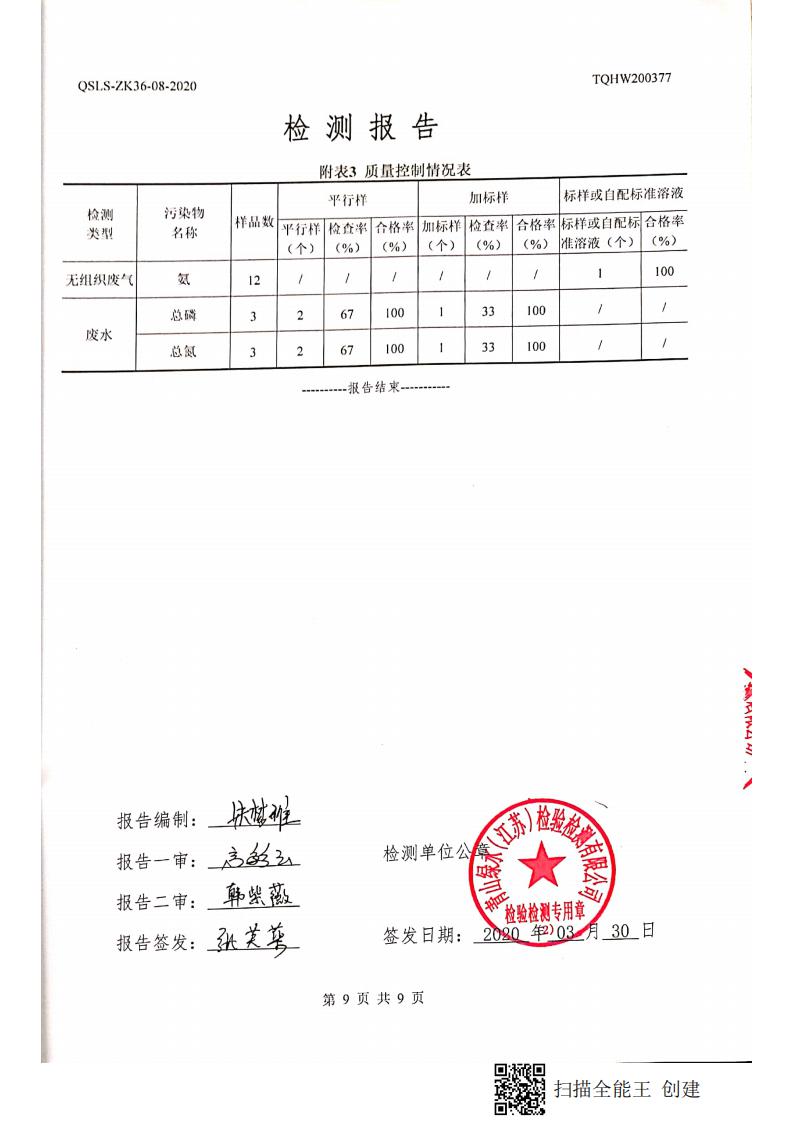 南通市康橋油脂有限公司3月份環(huán)境檢測報(bào)告