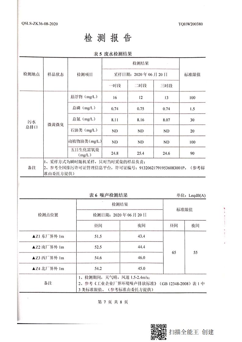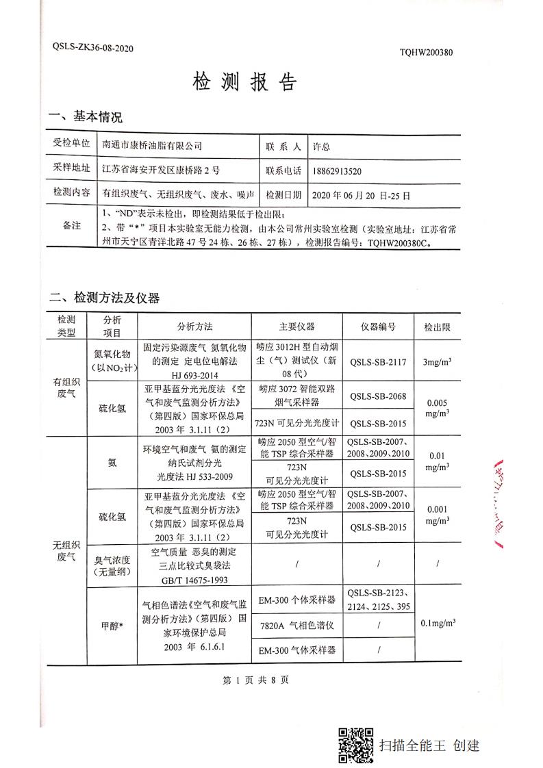 南通市康橋油脂有限公司7月份環(huán)境檢測報告