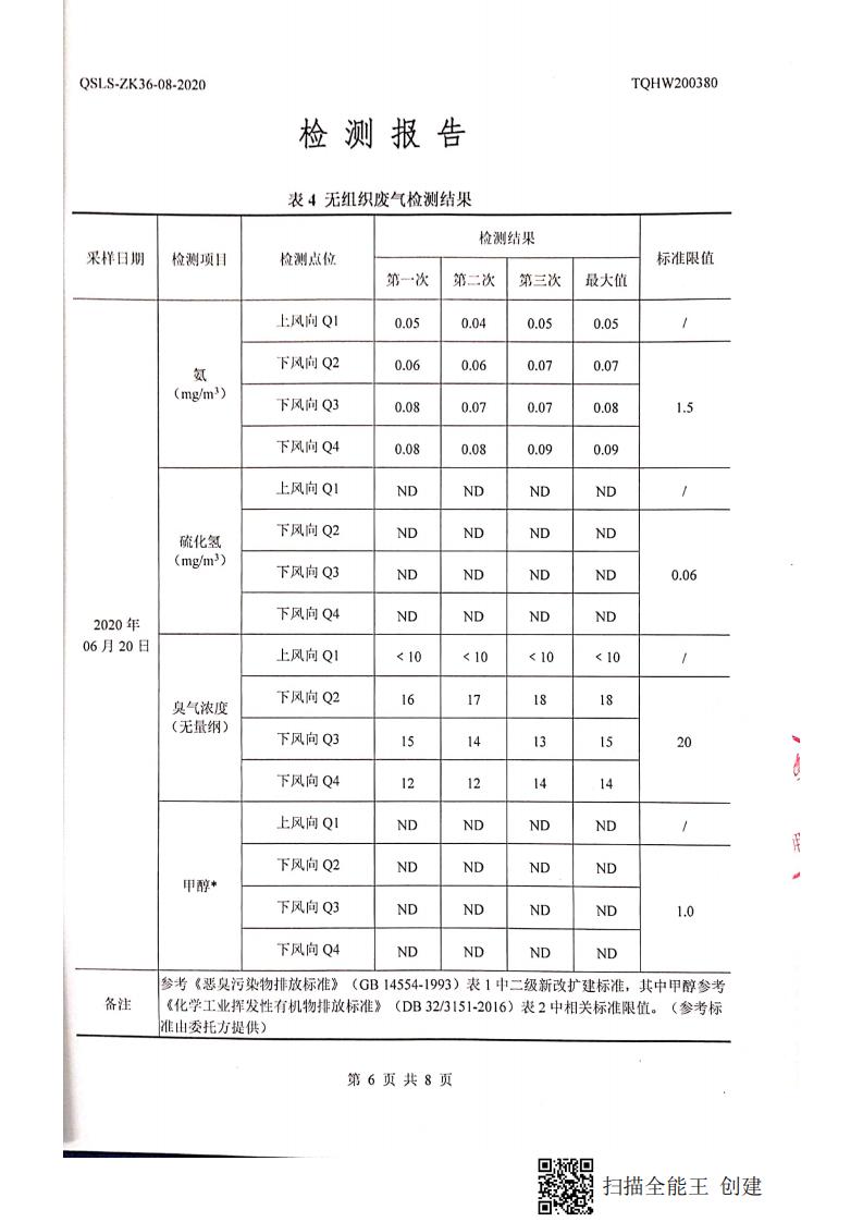 南通市康橋油脂有限公司6月份環(huán)境檢測報告